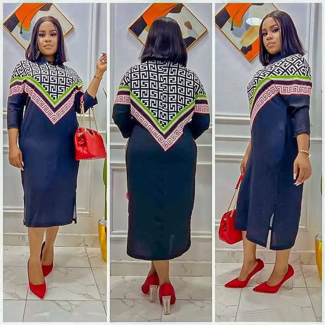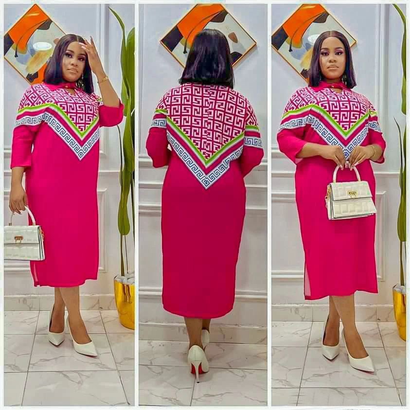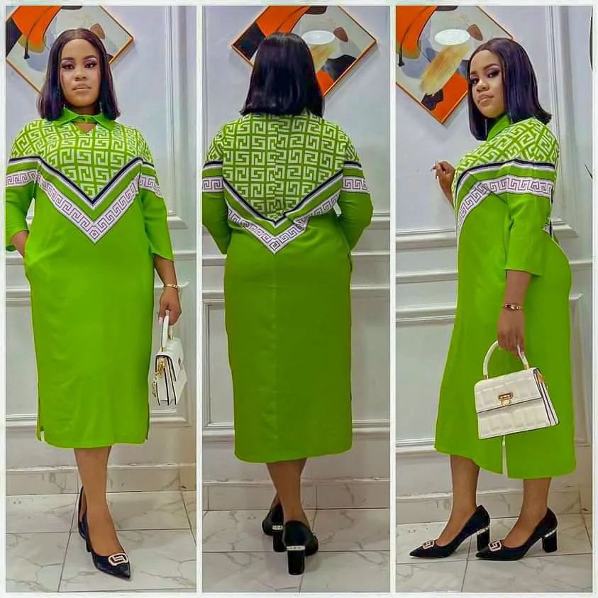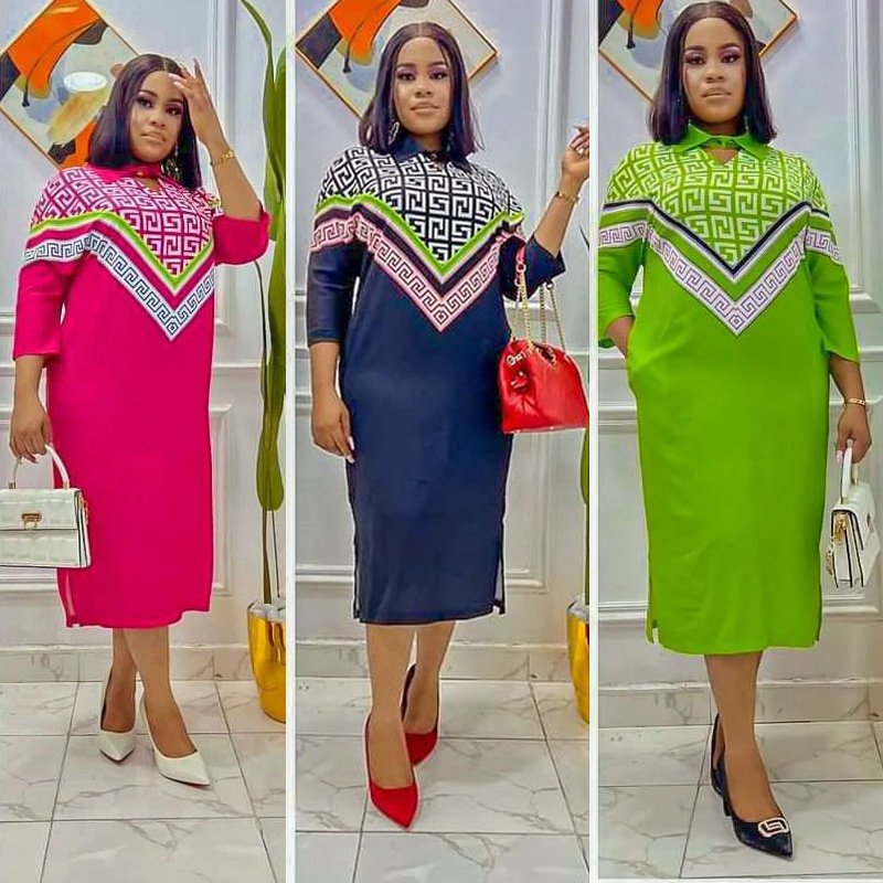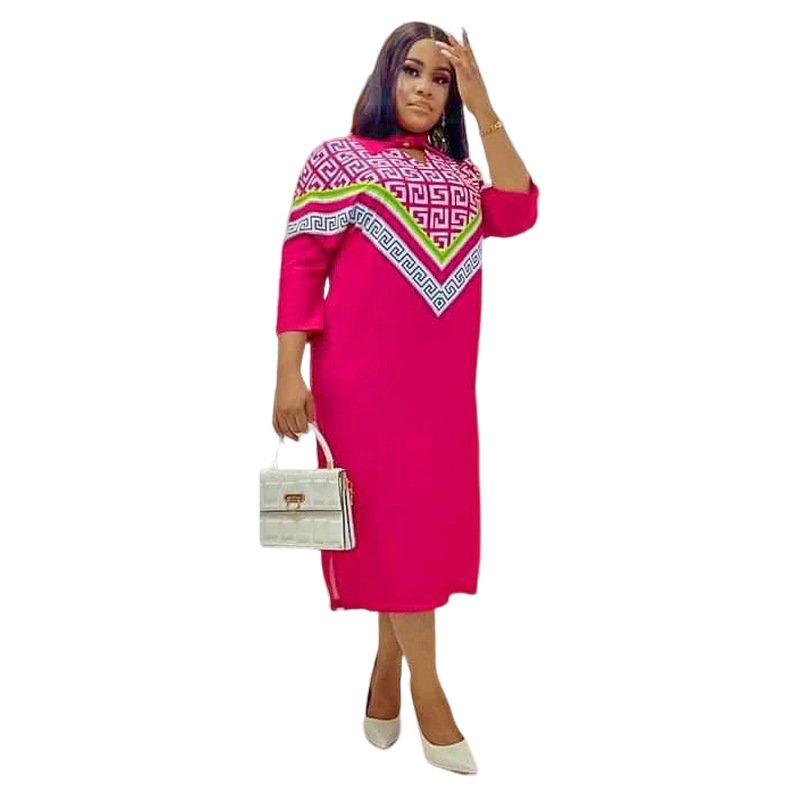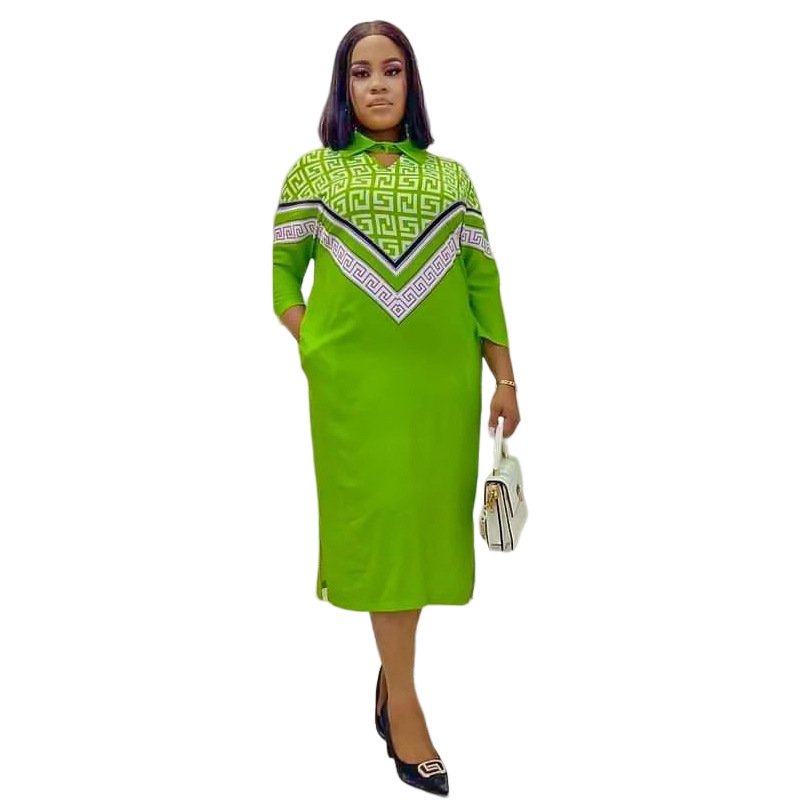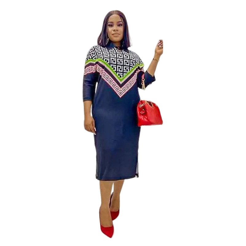 African Plus Size Dress Amazon ebay New Spring / Summer Fashion Temperament Elegant Print Shirt Maxi Dress 040