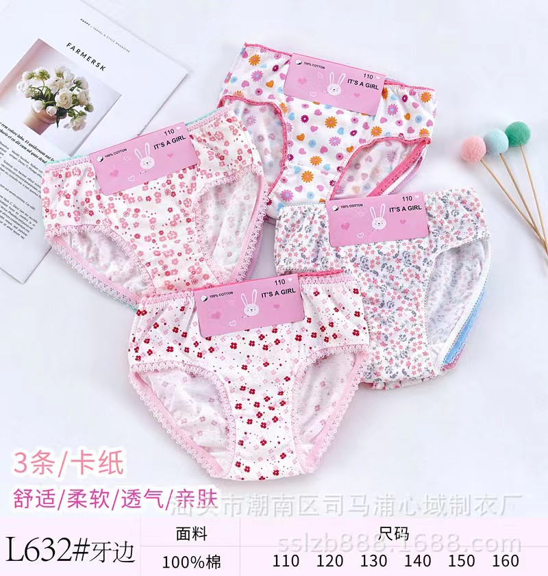Factory direct cross-border supply girls teeth edge briefs cotton foreign trade cardboard girls lace briefs MOQ 520 PCS AGE 3-9 YEARS