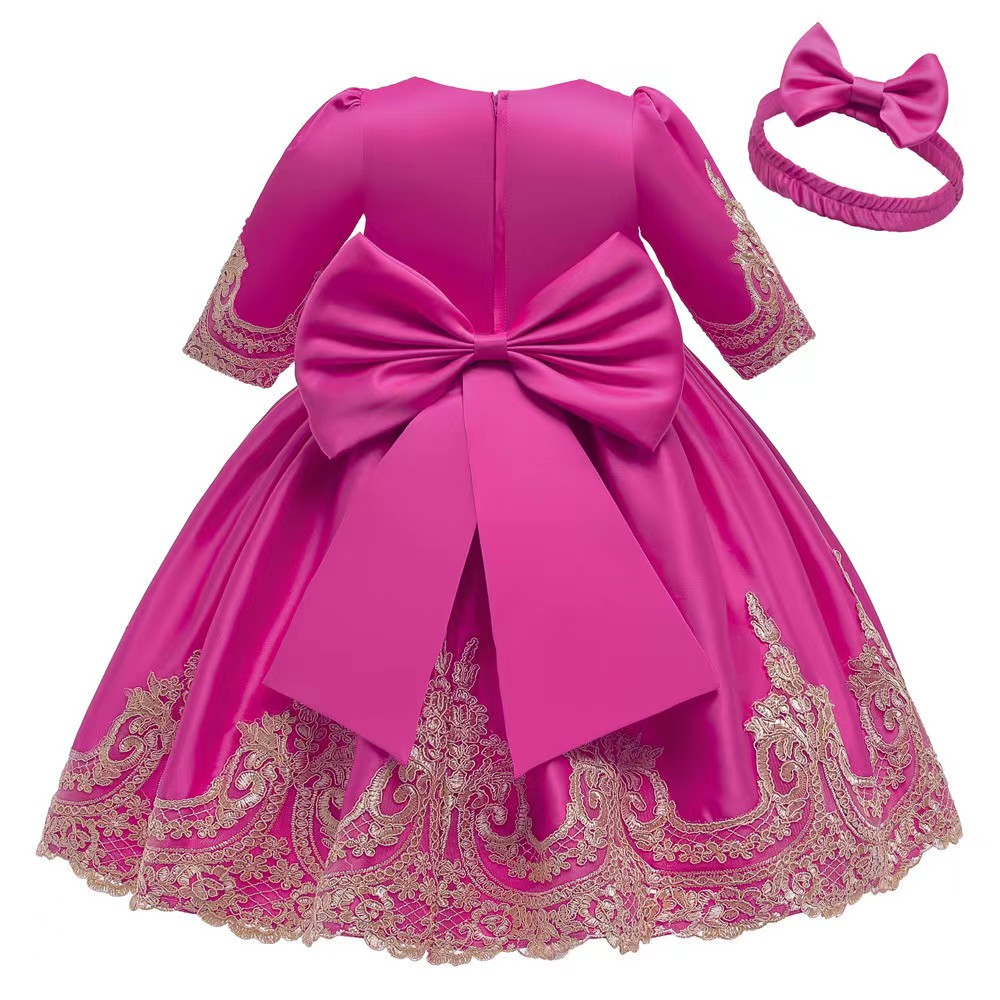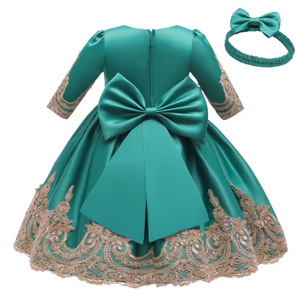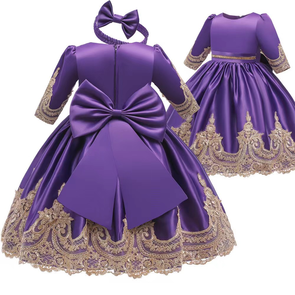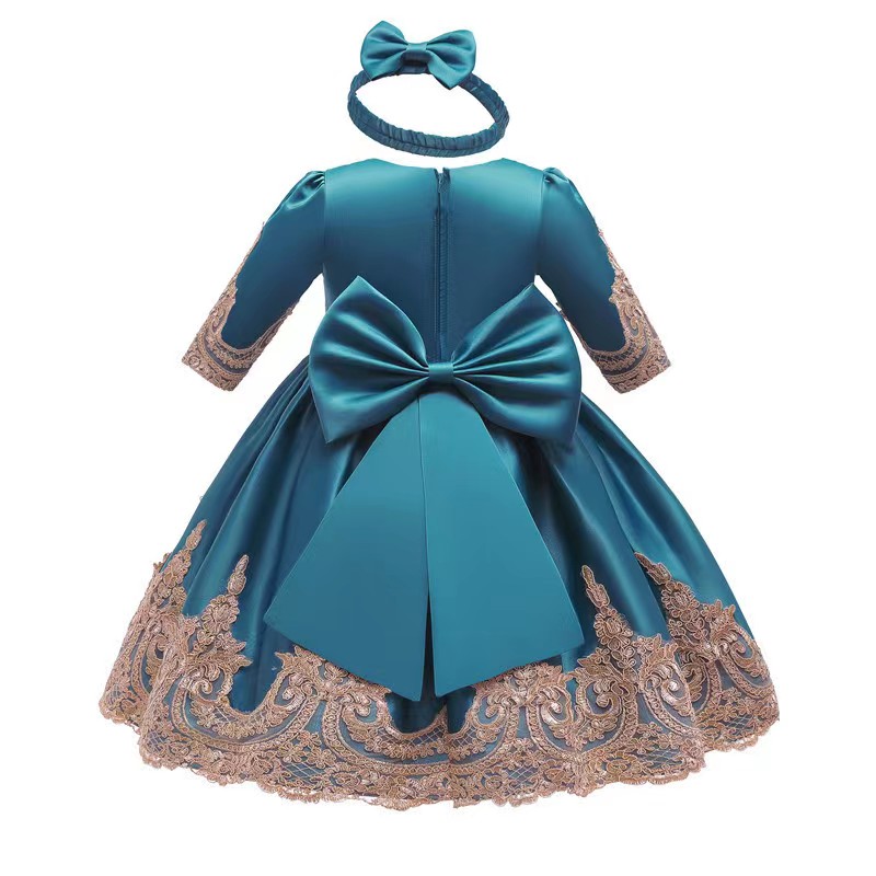 MOQ 33 SIZE 80cm ,90cm, 100cm,110cm ,120cm, spring wholesale trade new girls dress bow princess dress children’s evening dress lace DS
