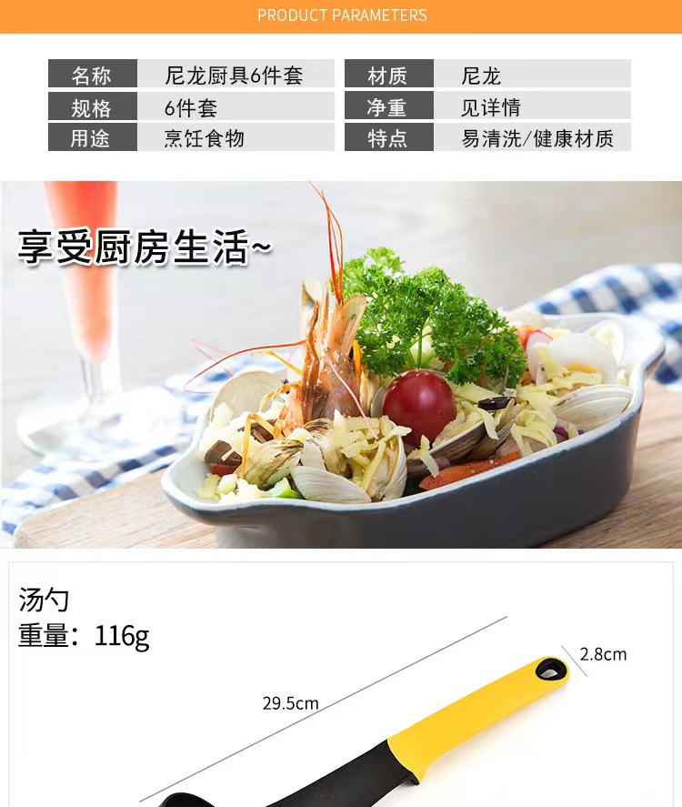 Factory direct supply kitchen nylon kitchenware 6 sets of non-stick cooking shovel spoon set kitchen utensils set a generation of hair