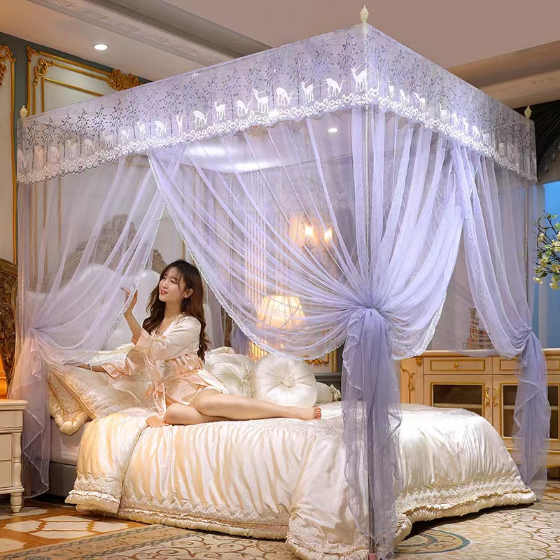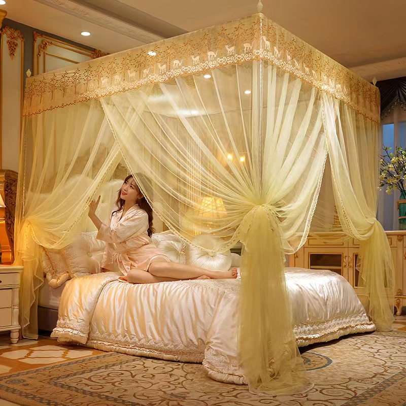 Palace mosquito net three-door household princess wind landing 1.2 meters single double bed mosquito net thick stainless steel bracket MOQ 50