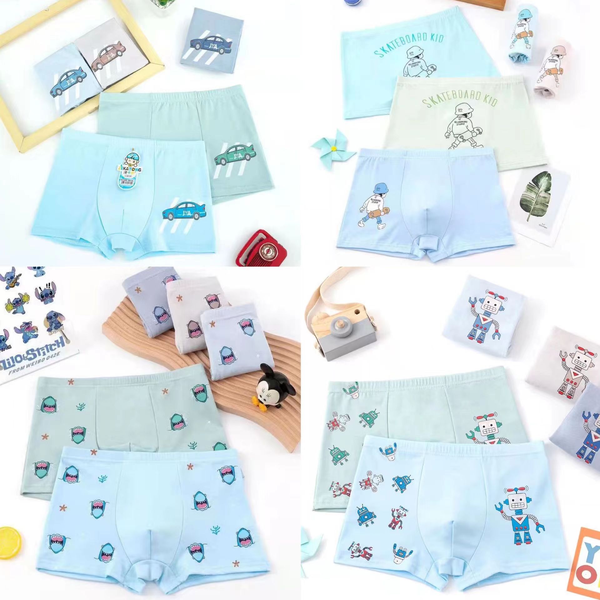 MOQ 400 The boy’s cotton panties double inside file girls breathable boxer shorts pattern stall underwear